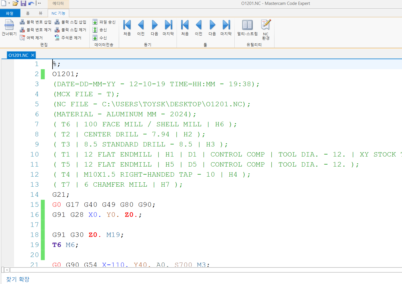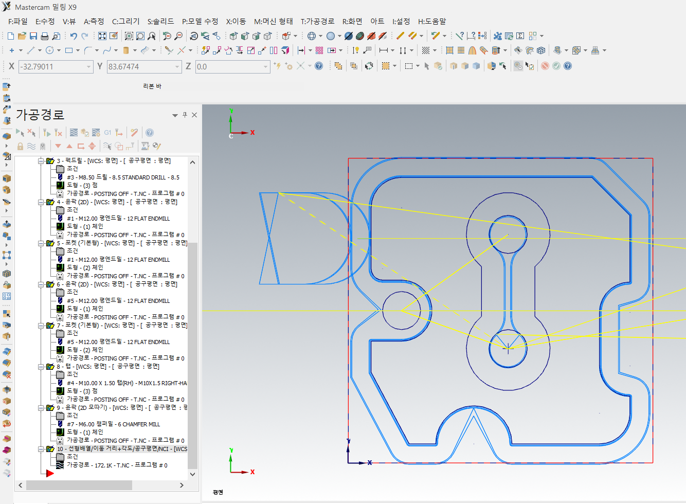 마스터캠 X9 버젼을 활용하여, 머시닝센터 MCT 2D 캠 디자인과 NC 프로그램을 생성합니다.