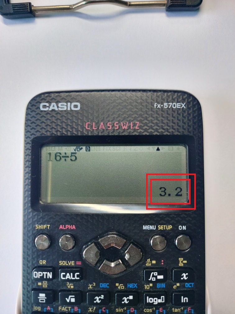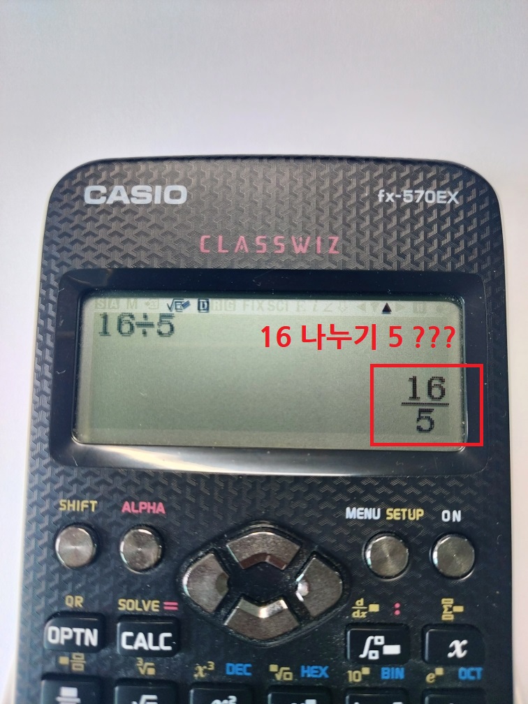우리는 16을 5로 나눈 결과값을 얻고 싶은데, 그냥 분수 표현식 그대로 나온다면 계산기 자체가 잘못된 건 아닌지 걱정이 됩니다.